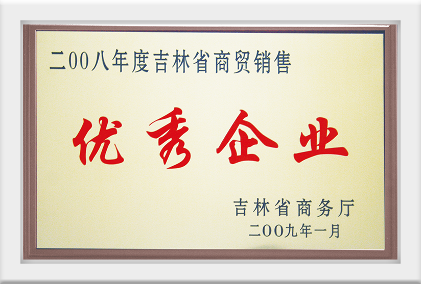 2009年1月榮獲二零零八年度吉林省商貿(mào)銷售優(yōu)秀企業(yè)