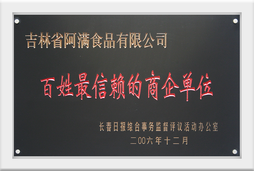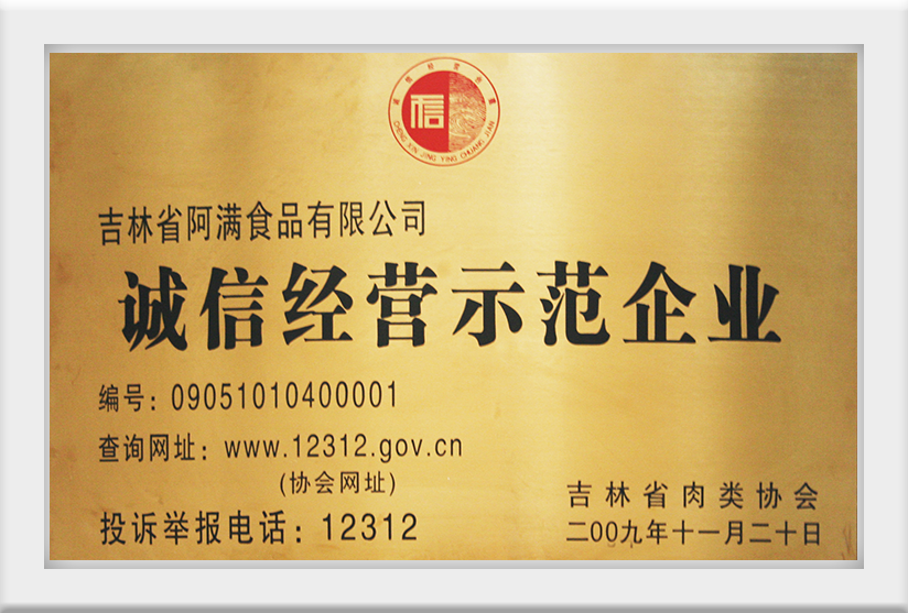 2007年12月獲得吉林省質(zhì)量誠信企業(yè)