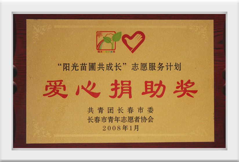 2008年1月獲得“陽光苗圃共成長”志愿服務(wù)計劃愛心捐助獎